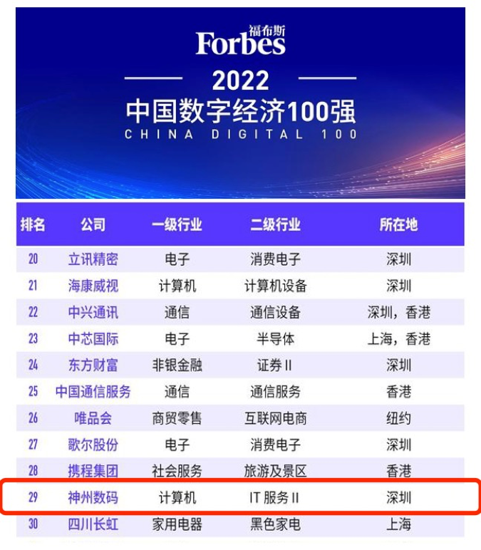 8月20日,“福布斯2022中国数字经济100强榜单”在江西上饶发布。作为数字中国的探索者、实践者和赋能者,长征娱乐数码凭借杰出的表现,位列百强榜单第29位,计算机类第3位,再度获得权威机构认可。
