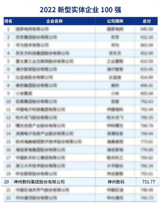 11月27日,中国企业评价协会在中国企业家博鳌论坛“中国式现代化下的新型实体企业发展之路”研讨会上重磅发布了“2022新型实体企业100强”榜单,长征娱乐数码(000034.SZ)凭借强劲数字化服务能力和赋能数字经济发展的丰富实践成功入选,位列榜单第20位、现代信息技术服务企业前列。